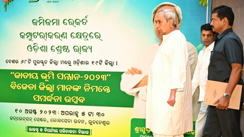 ଜମିଜମା ରେକର୍ଡ କମ୍ପୁଟରୀକରଣ କ୍ଷେତ୍ରରେ ଦେଶରେ ଶ୍ରେଷ୍ଠ ଓଡ଼ିଶା, ୧୯ ଜିଲ୍ଲାକୁ ସମ୍ମାନିତ କଲେ ମୁଖ୍ୟମନ୍ତ୍ରୀ