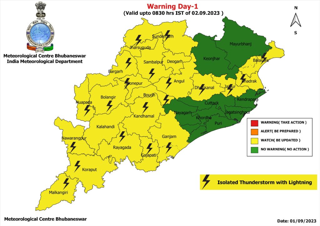 ଆସନ୍ତା ୨୪ ଘଣ୍ଟା ମଧ୍ୟରେ ରାଜ୍ୟର ୨୨ ଜିଲ୍ଲାରେ ବିଜୁଳି ଘଡ଼ଘଡ଼ି ସହ ବର୍ଷା ସମ୍ଭାବନା