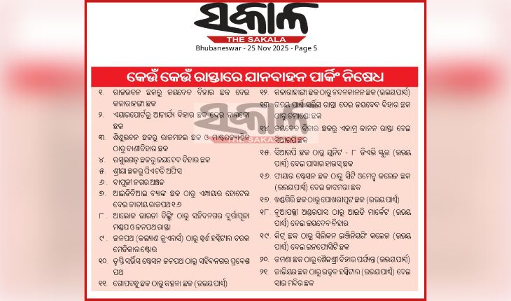 ରାଜଧାନୀର ୨୧ ରାସ୍ତାରେ ପାର୍କିଂ କଟକଣା: ନ ମାନିଲେ ଗାଡ଼ି ଉଠାଇନେବ ପୁଲିସ, ଜାଣନ୍ତୁ କେଉଁ କେଉଁ ରାସ୍ତାରେ ଯାନବାହନ ପାର୍କିଂ ନିଷେଧ