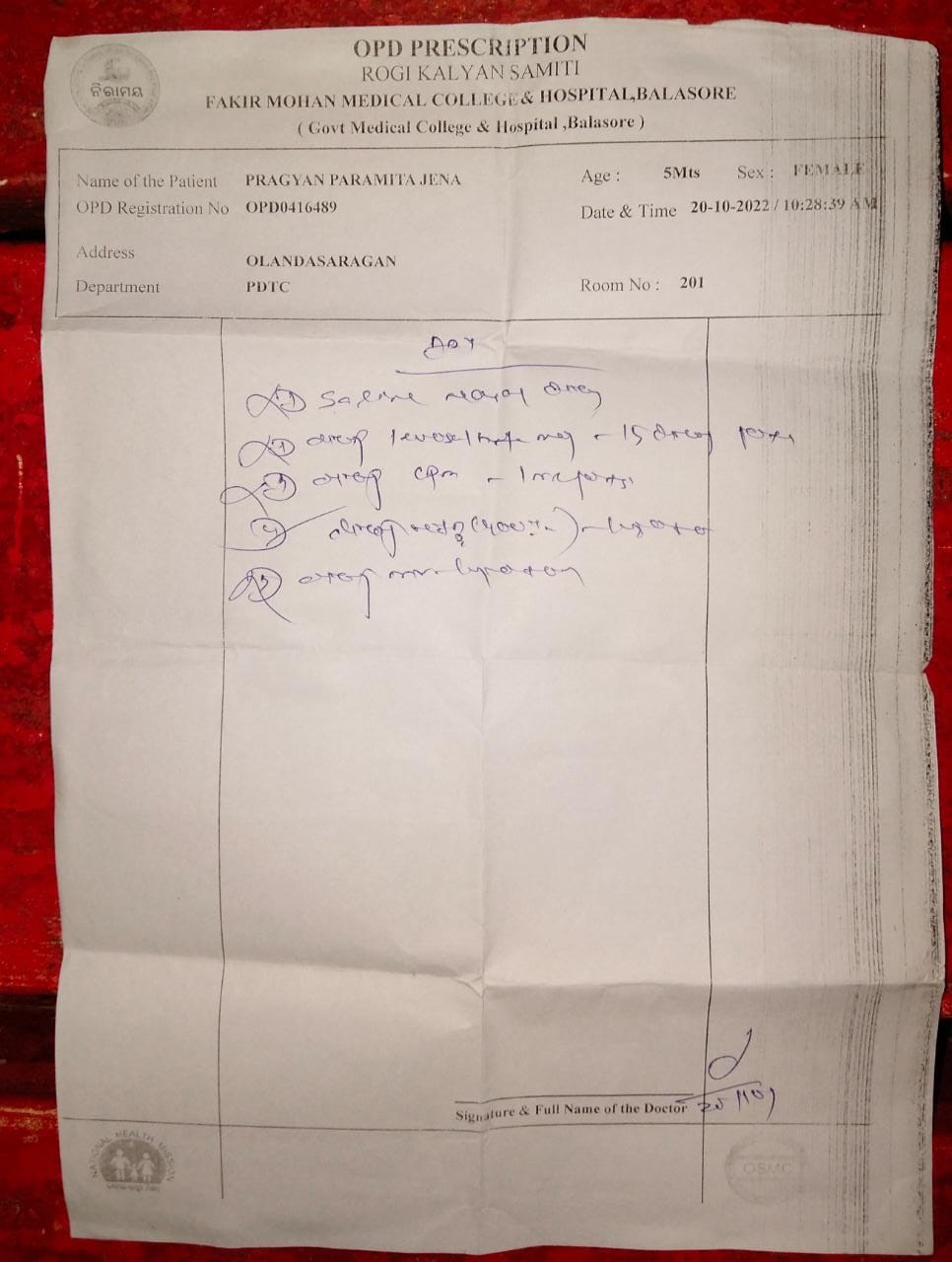 ଏମିତିକି ଅନେକ ପ୍ରେସକ୍ରିପସନ୍ ରେ ଡାକ୍ତରଙ୍କ ଦସ୍ତଖତ ମଧ୍ୟ ରହୁନି। ଯାହା ଦୃଷ୍ଟି ଆକର୍ଷଣର ବିଷୟ। ଏପରି ଘଟଣା ମଧ୍ୟ ନିକଟରେ ଘଟିଛି। ସାରଗାଁ ଅଞ୍ଚଳର ଅଜୟ କୁମାର ଜେନା ଜଣେ ନିଜର ୫ ବର୍ଷର ଝିଅକୁ ଫକୀରମୋହନ ମେଡିକାଲ୍ କଲେଜ ଓ ହସପିଟାଲ୍ ର ପେଡିଆଟ୍ରିକ୍ ବିଭାଗକୁ ନେଇଥିଲେ। ସେଠାରେ ଡାକ୍ତର ରୋଗୀକୁ ଦେଖି ପ୍ରେସକ୍ରିପସନ୍ ରେ ୫ ଟି ଔଷଧର ନାମ ଲେଖିଥିଲେ। ଯାହାକୁ ପଢିବା ଅତ୍ୟନ୍ତ କଷ୍ଟକର। ଡାକ୍ତର ଦଖେଇବା ପରେ ଅଜୟ ନିରାମୟକୁ ଔଷଧ ଆଣିବାକୁ ଯିବା ପରେ ତାଙ୍କୁ ୫ ଟାରୁ ଗୋଟିଏ ଔଷଧ ମିଳିଥିଲା। ବାକି ଔଷଧ ନଥିବା କହିଥିଲେ। ଯାହାକୁ ନେଇ ଅଜୟ ଟୁଇଟର୍ ରେ ଅସନ୍ତୋଷ ପ୍ରକାଶ କରି ଡାକ୍ତର ଲେଖୁଥିବା ଔଷଧ ମଧ୍ୟରୁ ୯୦ ପ୍ରତିଶତ ଔଷଧ ଡାକ୍ତରଖାନାରେ ମିଳୁନି ବାଧ୍ୟହୋଇ ବାହାରୁ କିଣୁଛନ୍ତି ରୋଗୀ ବୋଲି ପୋଷ୍ଟ କରିଥିଲେ।