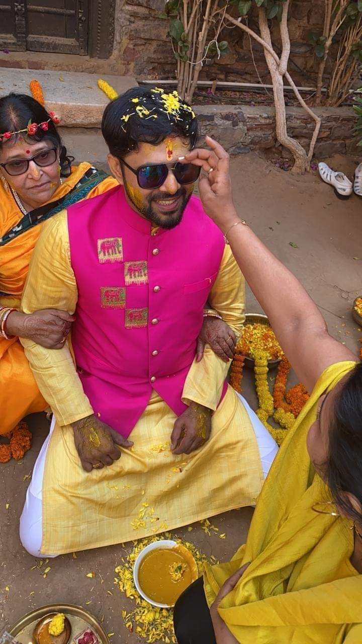 ହଳଦୀ ସେରିମୋନିରେ ଉଭୟଙ୍କ ପରିବାର ସଦସ୍ୟ ଉପସ୍ଥିତ ରହିଥିବାବେଳେ ଉଭୟ ସବ୍ୟ ଏବଂ ଅର୍ଚ୍ଚିତା ହଳଦୀ ଲଗାଇଥିବା ଫଟୋରେ ନଜର ଆସିଛନ୍ତି। ଗତ ୩ ଦିନ ହେବ ଉଭୟ ପରିବାରର ସଦସ୍ୟ ରାଜସ୍ଥାନରେ ଅଛନ୍ତି। ବିବାହ କାର୍ଯ୍ୟକ୍ରମରେ ଉଭୟ ପରିବାର ସଦସ୍ୟ ଓ ଘନିଷ୍ଠ ବନ୍ଧୁ ପାଖାପାଖି ୫୦ଜଣ ସାମିଲ ହୋଇଥିବା ଥିବା ସୂଚନା ମିଳିଛି।