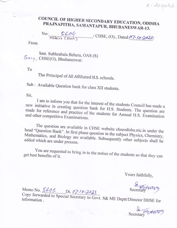 କିନ୍ତୁ ଚଳିତ ବର୍ଷର ପ୍ରଥମ ଥର ଉଚ୍ଚ ମାଧ୍ୟମିକ ଶିକ୍ଷା ପରିଷଦ ପକ୍ଷରୁ ଯୁକ୍ତ ଦୁଇ ବୋର୍ଡ ପରୀକ୍ଷାର୍ଥୀଙ୍କ ପାଇଁ କୋଶ୍ଚିନ୍ ବ୍ୟାଙ୍କ ପ୍ରକାଶ କରାଯାଇଛି। chseodisha.nic.in ୱେବସାଇଟରେ କୋଶ୍ଚିନ୍ ବ୍ୟାଙ୍କ୍ ଉପଲବ୍ଧ ଅଛି। ପ୍ରଥମ ପର୍ଯ୍ୟାୟ ରେ ଫିଜିକ୍ସ, କେମିଷ୍ଟ୍ରି, ମେଥ୍ମେଟିକ୍ସ ଓ ବାୟୋଲୋଜି ବିଷୟର ପ୍ରଶ୍ନ ଉପଲବ୍ଧ ରହିଛି। ପରବର୍ତ୍ତୀ ପର୍ଯ୍ୟାୟରେ ଅନ୍ୟ ବିଷୟର ପ୍ରଶ୍ନ ଅପ୍ ଲୋଡ କରାଯିବ। କୋଶ୍ଚିନ୍ ବ୍ୟାଙ୍କରୁ କୋଶ୍ଚିନ୍ ନେଇ ପିଲାମାନେ ପରୀକ୍ଷା ପାଇଁ ପସ୍ତୁତ ହେବା ପାଇଁ ସଚେତନ କରିବାକୁ ସବୁ ଯୁକ୍ତ ଦୁଇ କଲେଜ୍ ଅଧ୍ୟକ୍ଷଙ୍କୁ CHSE ପକ୍ଷରୁ ଚିଠି କରାଯାଇଛି।